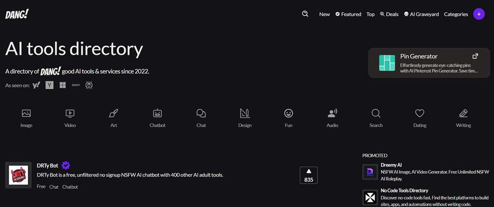 Dang.ai is one of the newer AI tool directories that focuses on speed and simplicity. Its interface is minimal, which makes browsing feel fast and direct.